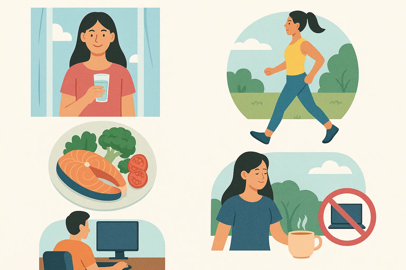 1. Κάθε πρωϊ μόλις σηκωθούμε πίνουμε ένα ποτήρι νερό ( κατά προτίμηση ζεστό με λίγο λεμόνι).